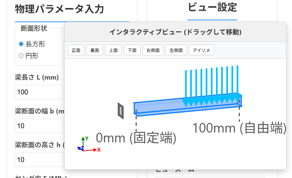 強度特性LLMでコードを作成しています。梁に分布荷重を付与した場合の計算を行っています。