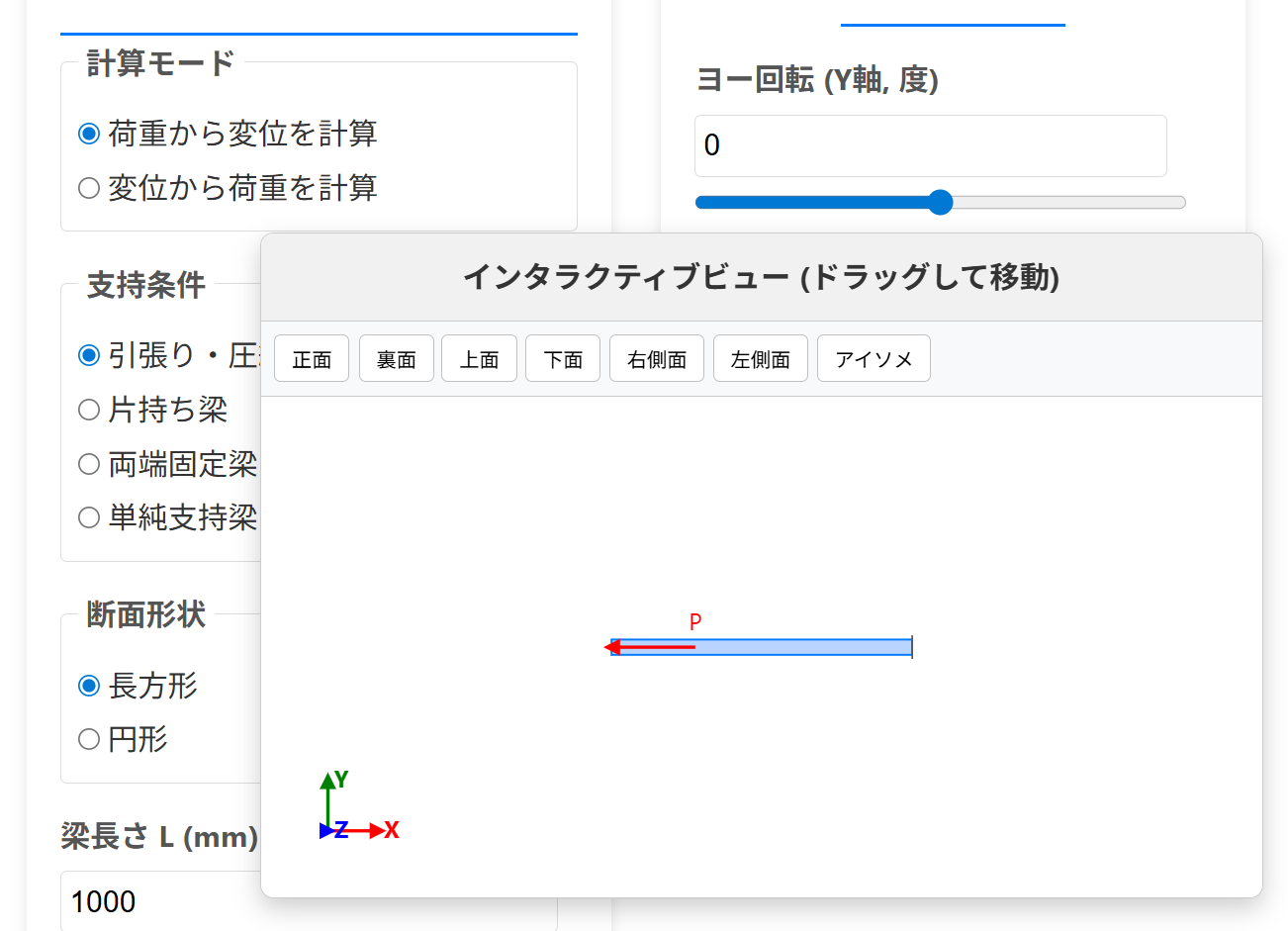 最大変位 (δ_max): 0 mm