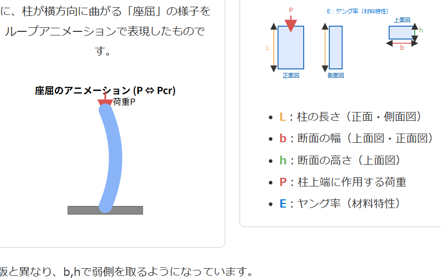 このツールでは、この座屈現象が生じる最小の軸方向荷重である「最小座屈荷重 Pcr」を計算します。