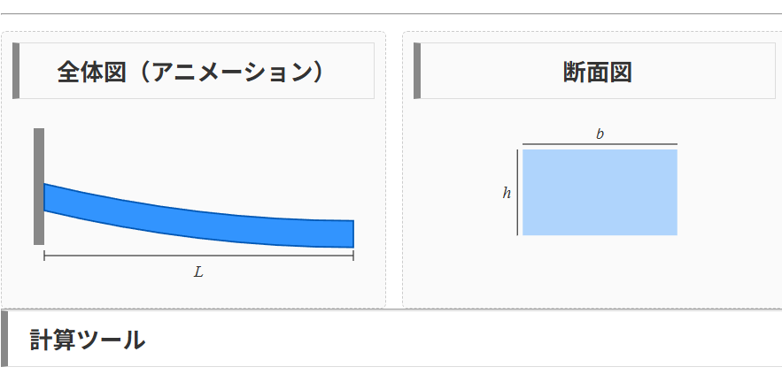 このページは、片持ち梁の固有振動数を計算するツールです。主に、設計初期段階でのオーダーチェックを目的としています。